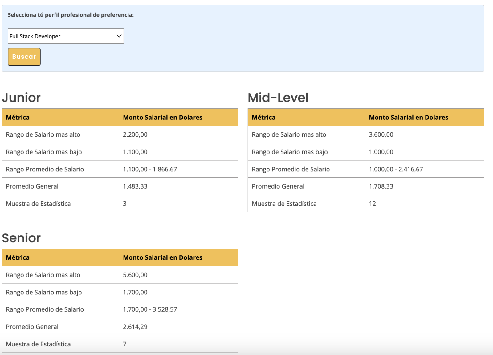 Con nuestra herramienta, podrás obtener información detallada sobre el mercado y tomar decisiones más informadas sobre tu carrera profesional.